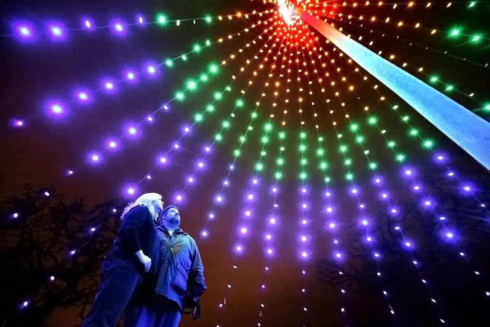 1. Том и Кэти Ханнс любуются новогодними гирляндами в парке Олин-Тюрвилль в Мэдисоне, штат Висконсин. Каждый год под Рождество парк озаряется разноцветной иллюминацией. (Wisconsin State Journal / John Hart)