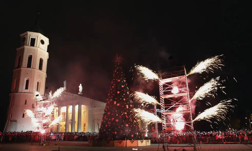 12. Салют озаряет небо над елкой в Вильнюсе. (AP / Mindaugas Kulbis)