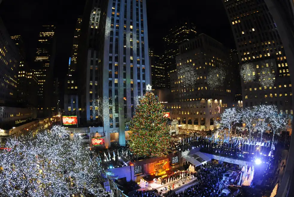 23. 22-метровая елка Рокфеллер-центра освещена с помощью 30 000 энергосберегающих светодиодных огней в Нью-Йорке. (AP / Henny Ray Abrams)