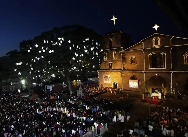 19. Освещенная огнями церковь во время утренней службы, символизирующей начало рождественской пятницы в пригороде Манилы Лас-Пинас, Филиппины. Утренняя служба - местная религиозная традиция, с этого дня филиппинцы ходят в церковь 9 дней подряд. (AP / Pat Roque)