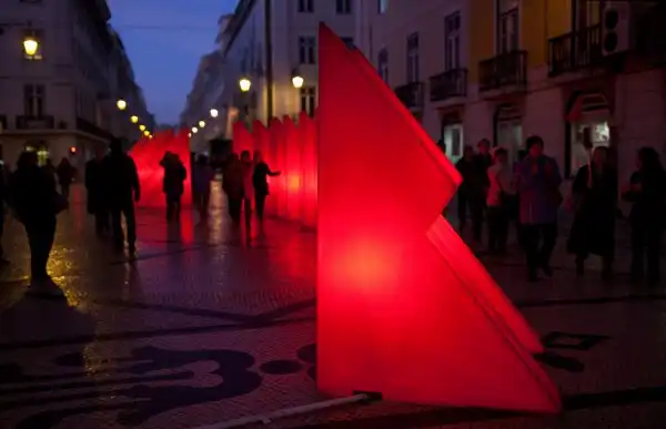 2. Пешеходы гуляют вокруг рождественских декораций на главной торговой улице Руа Августа в Лиссабоне. Обычно в это время года улицы португальской столицы горят огнями, но в этом году освещения мало - подстать угрюмому настроению из-за жестких мер экономики. (AP / Armando Franca)