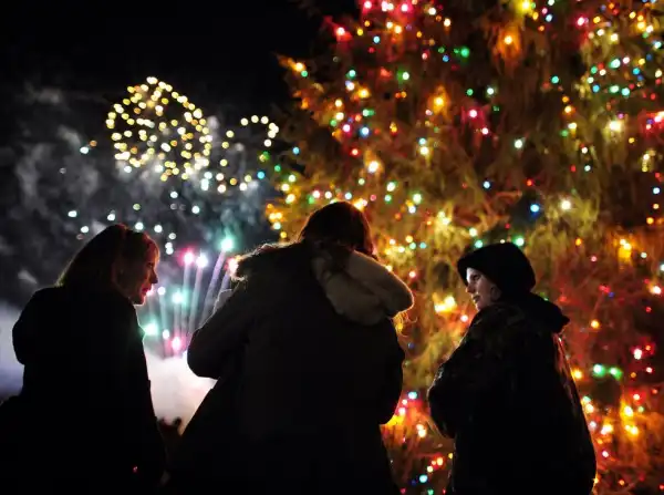 33. Салют вскоре после того, как мэр города Августа в штате Джорджия (США) Дик Копенхэвер зажег рождественскую елку. (The Augusta Chronicle / Michael Holahan)