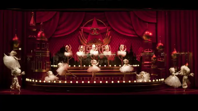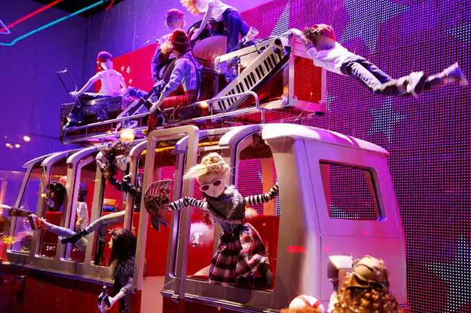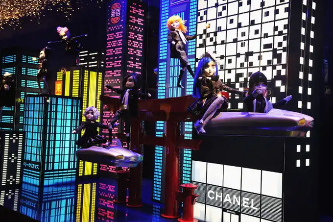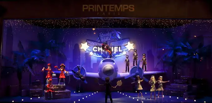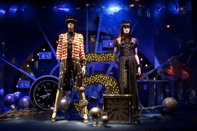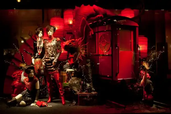 Витрины украшены в стиле крупнейших столиц мира- Токио,Лондон, Москва и т.д.