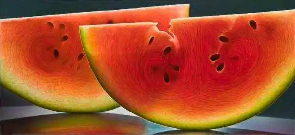 Художник из Огайо Деннис Войткиевич (Dennis Wojtkiewicz)[voyt-KEV-itch] рисует фотореалистичные картины фруктов. В своей серии он изобразил все виды фруктов, включая землянику, арбузы, яблоки, апельсины, лимоны и киви. Совершенно удивительно, что каждый волосок, каждое семя и каждая прожилка хорошо видны! Вот это настоящее внимание к мелким деталям!