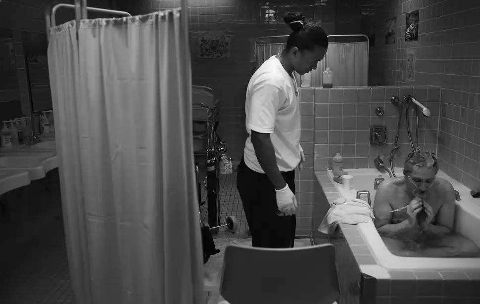 Кеннета Коулена бреют. Когда хоспис открылся, все заключенные штата, которым оставалось жить менее полугода могли просить перевода туда.