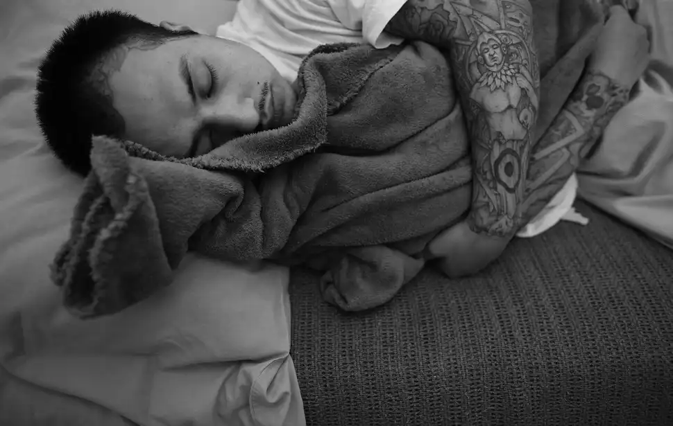 Джо Терни, заключенный в хосписе, не может заснуть из-за мигрени.