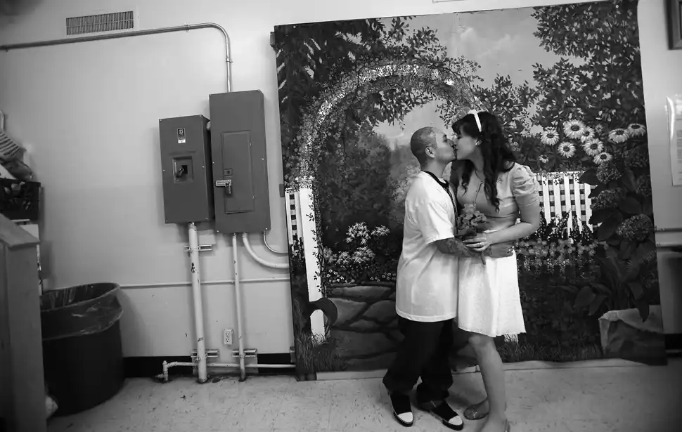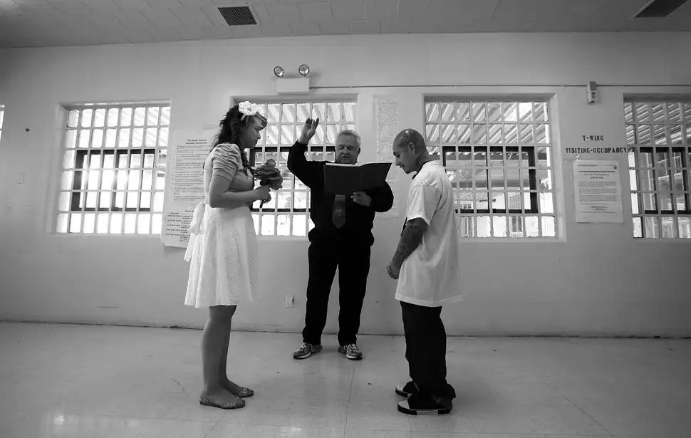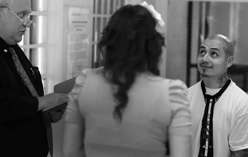 Фредди Гарсиа завязывает самодельный галстук, готовясь к свадьбе. Впервые он попал в тюрьму в 18 лет за кражу. Рак у него обнаружили в 2009 году, когда он отбывал второй срок за ограбление магазина JC Penney. Он, угрожая пистолетом, забрал оттуда фляжку с логотипом команды Oakland Raiders.