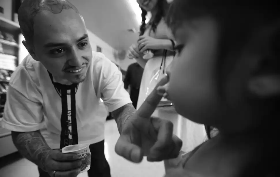 Фредди Гарсиа и его 3-х летняя дочь Бреаннна во время семейного визита после свадьбы в тюрьме.