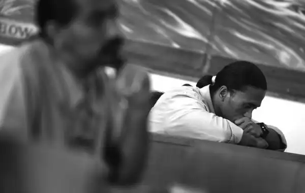 Фредди Гарсиа разговаривает по телефону со своей женой. Через два месяца после свадьбы их отношения резко ухудшились, и он подумывает о разводе.