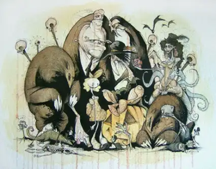 Gris Grimly - один из лучших иллюстраторов ужасов. Вы однозначно сталкивались с его работами, если смотрели фильмы и мультфильмы Tim(а) Burton(а)!