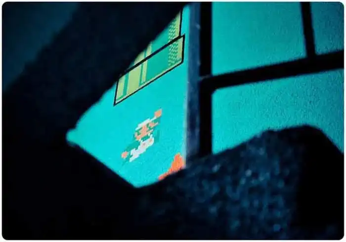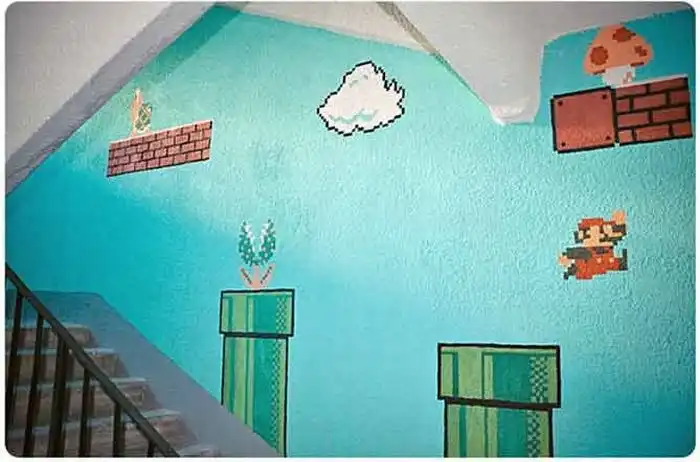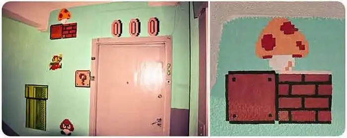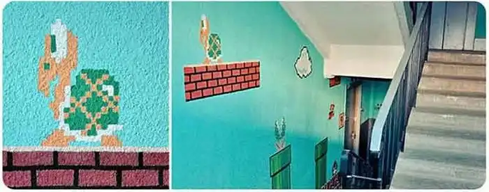 Обычный подъезд панельного дома, украшенный неизвестными умельцами в стиле Супер Марио.