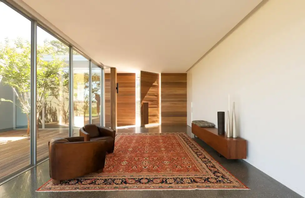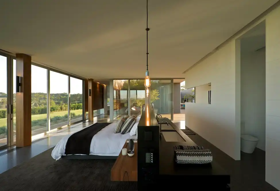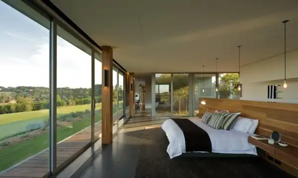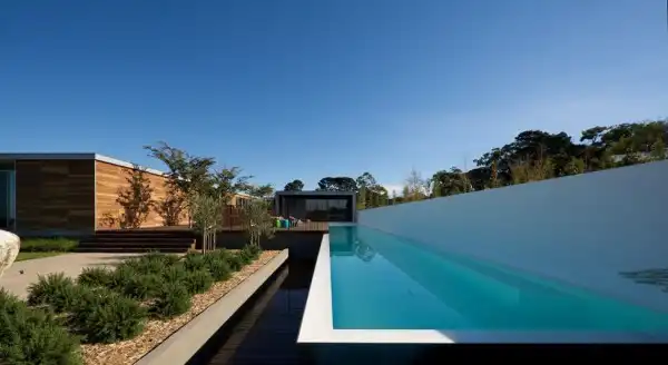 Главными достопримечательностями проекта являются огромный бассейн, а также открытые террасы, предусмотренные в качестве зон отдыха. Спрятанные за стенами конструкции, они дарят полную приватность и уединение, в то время как панорамные окна делают дом открытым, сближают с окружающей красотой.