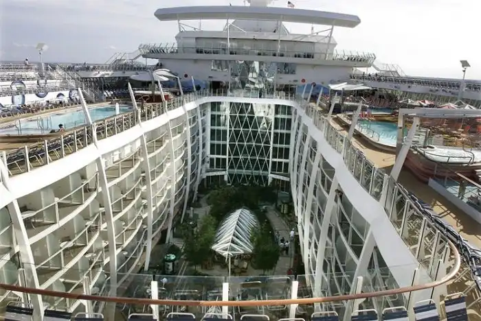 На палубе растут настоящие деревья и кустарники, бассейн с джакузи,
