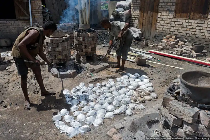 Здесь живут очень трудолюбивые люди, которые все стараются делать своими руками. В одной из деревень налажено производство алюминиевых кастрюль. Делают их полностью вручную из металлолома.