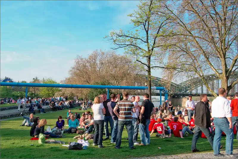 В парке была большая компания ребят в красных майках, они постоянно орали кричалки, в честь какого-то клуба. В какой-то момент, им очень громко начали отвечать из кафешки такая же толпа, но в майках другого цвета. Некоторое время они перекрикивались, а затем толпа из кафешки ломанулась к красным. Думали будет драка, а они взяли и пиво стали вместе пить, странные они какие то :)