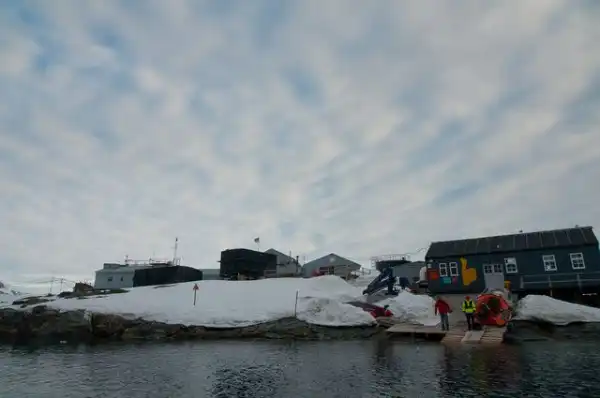 Туристов на берегу встречают сотрудники станции, правда, без хлеба и соли.