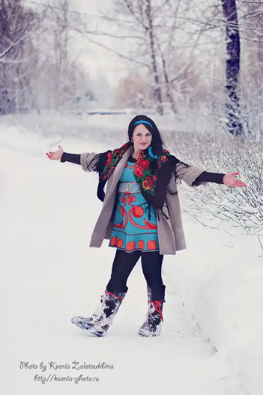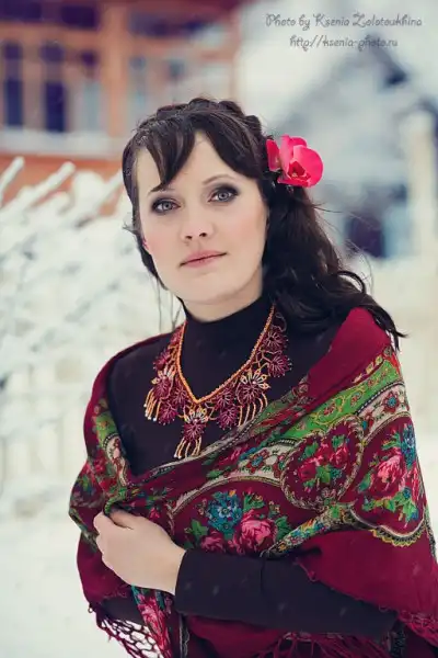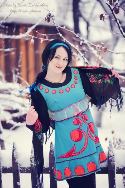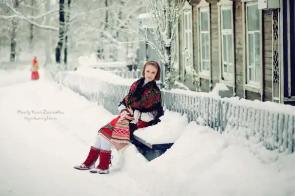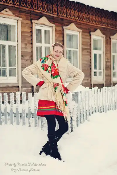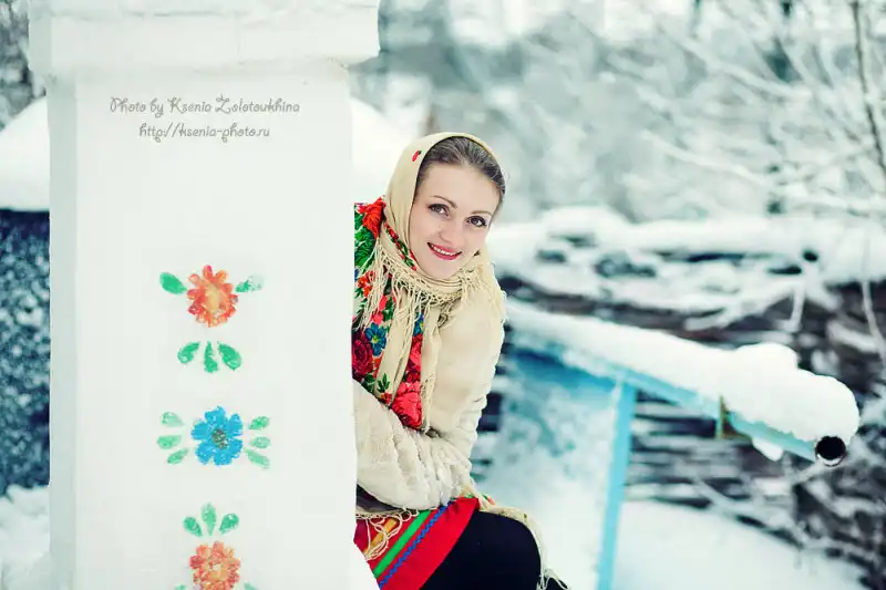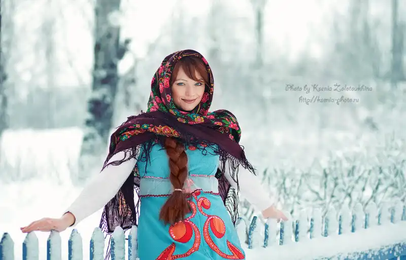 Стиль скорее украинский, а от русского только коса(и то крашеная) да зодчество деревянное