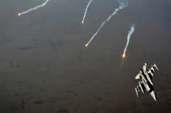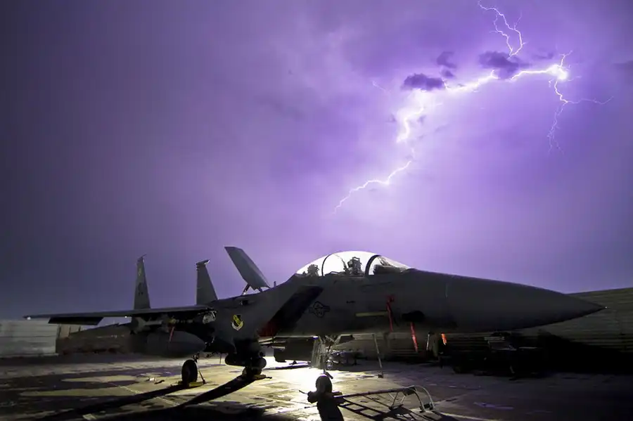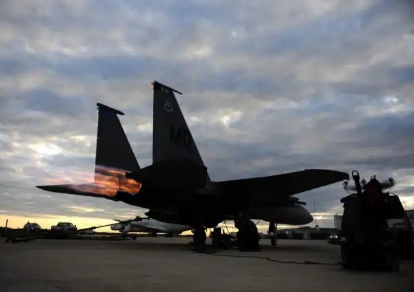 7. Истребители ВВС США F-15E Strike Eagle 12 ноября 2008 года над Афганистаном. Самолет приписан к триста девяносто первой экспедиционной истребительной эскадрилье на аэродроме Баграм, Афганистан