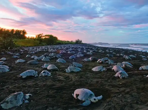 Черепахи на побережье Центральной Америки. Это олиивковые черепахи — вид некрупных морских черепах