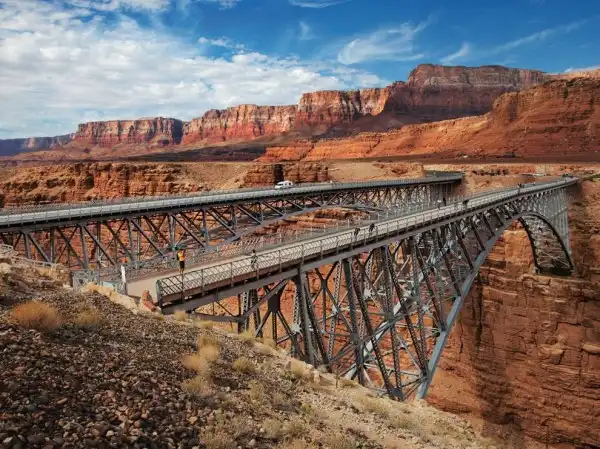 Пешеходный мост 1929 года и новый автомобильный мост через реку Колорадо