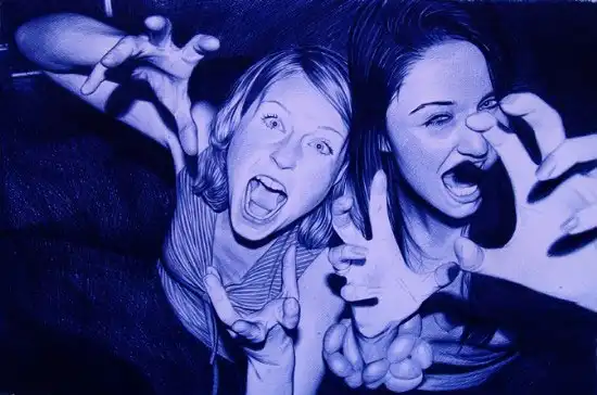 Испанский художник Хуан Франсиско Касас (Juan Francisco Casas ) рисует обыкновенной шариковой ручкой Bic. Никакого фотошопа или компьютерной графики. На создание одного рисунка 3 метра высотой у художника уходит примерно 4 шариковые ручки. Смелые и откровенные сюжеты своих картин Хуан Франсиско Касас заимствует из фотографий, сделанных им на вечеринках с друзьями.