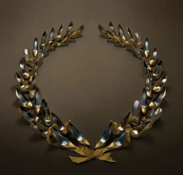 Логотип составленный из женских туфель, выкрашенных в золотой цвет