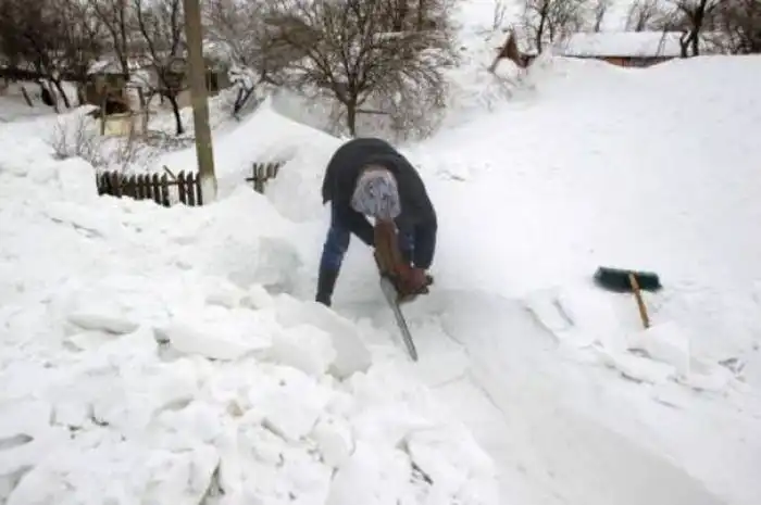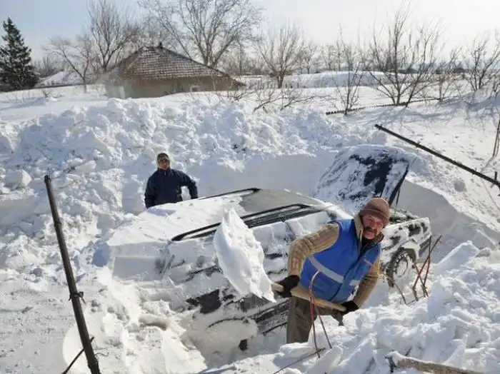 Румынскую деревню завалило почти пятиметровым слоем снега.