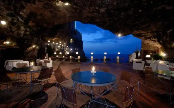 В итальянском курортном городке Полиньяно-а-Маре есть уникальный в своем роде ресторан. Располагается он в пещере под известняковым сводом и имеет незабываемый вид на море.