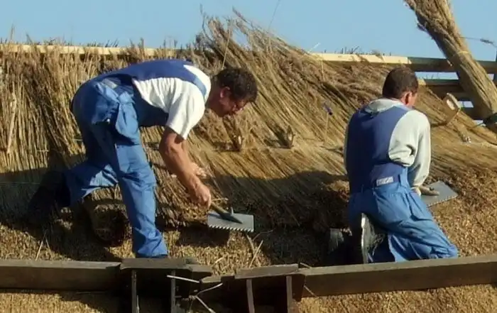 Для изготовления такой кровли используется водный тростник и солома.
