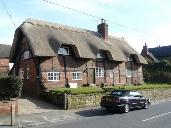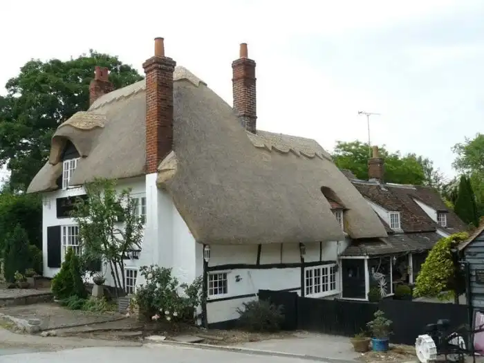 Соломенные крыши - это не редкость в пригороде Англии.