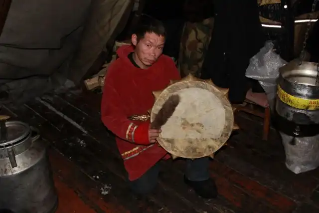 19. После того как нас ознакомили с чумом, шаман предложил немного рассказать о нас и что ждет в будущем. Приступил к своему ритуалу.