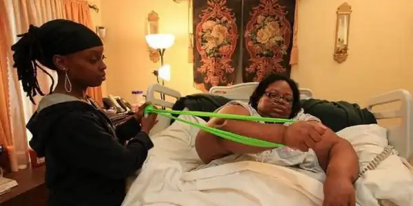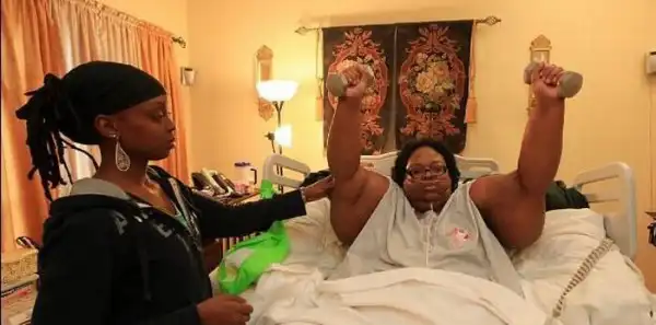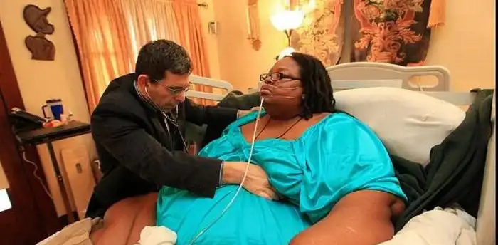 она специально набирала вес, чтобы побить несколько рекордов Гиннеса, тыт статейка с инфой была.
