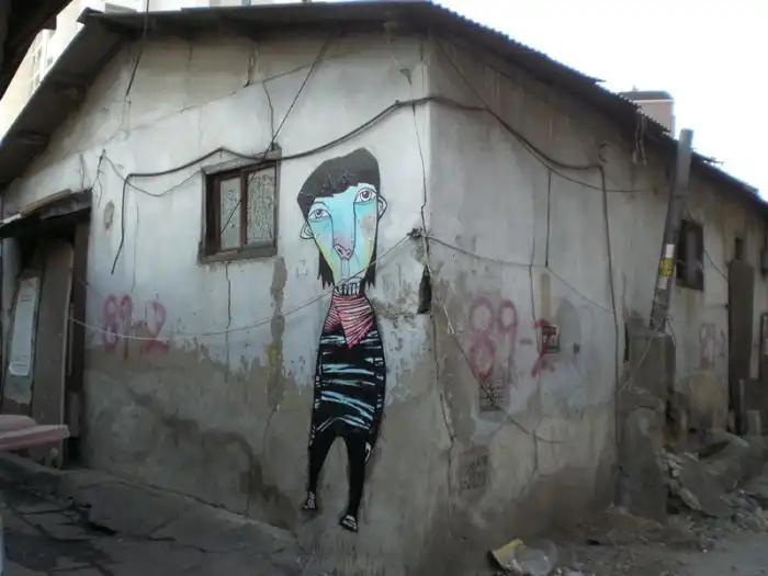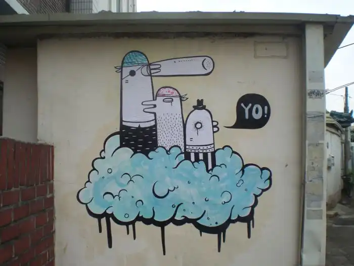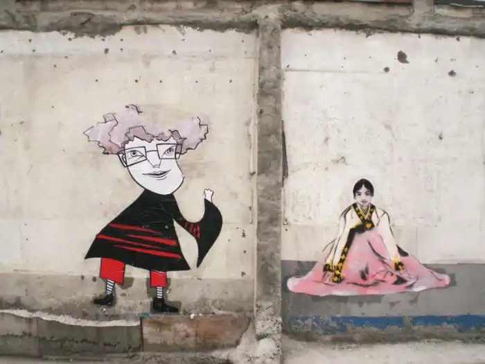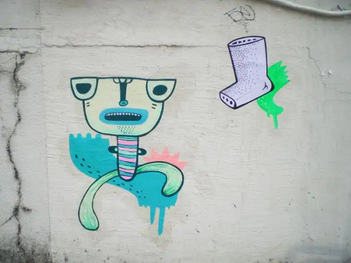 рисующая на городских стенах разные причудливые картины.