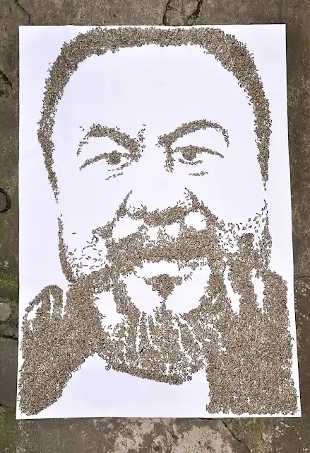 Концепция состояла в том, чтобы создать его портрет из настоящих семян.