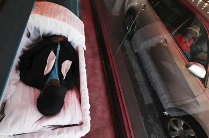 а его родственники и друзья могут попрощаться с ним, не выходя из автомобиля.