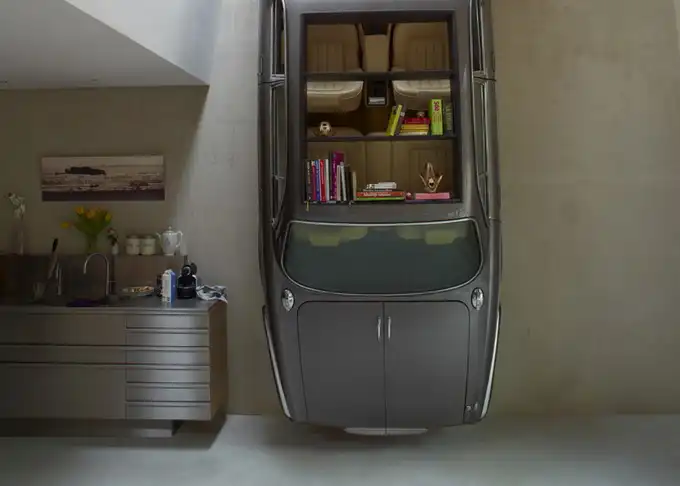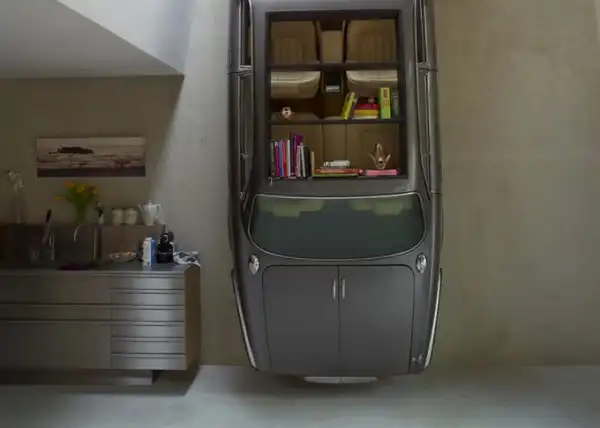 Проект голландской студии дизайна Denieuwegeneratie - Голландский горный дом. Это наполовину подземный дом, который находится в голландском заповеднике. Помимо необычной архитектуры, в доме также оригинальная мебель - книжная полка из "Ягуара" или ножки кухонного стола из мусорного ведра.