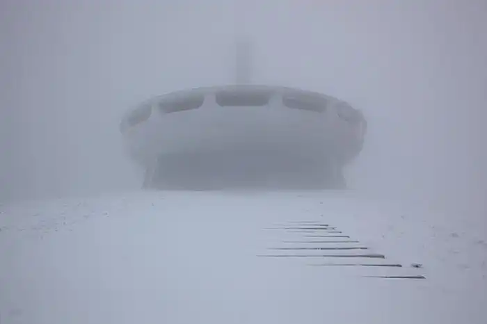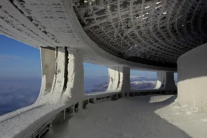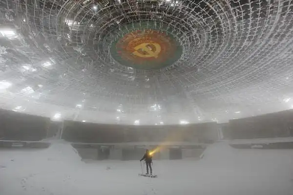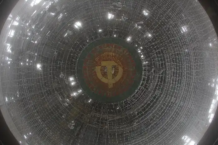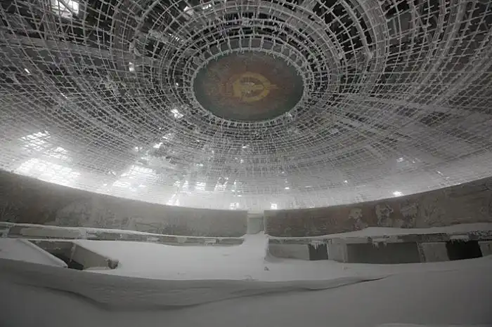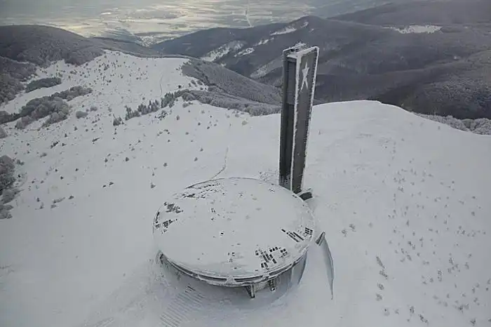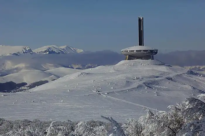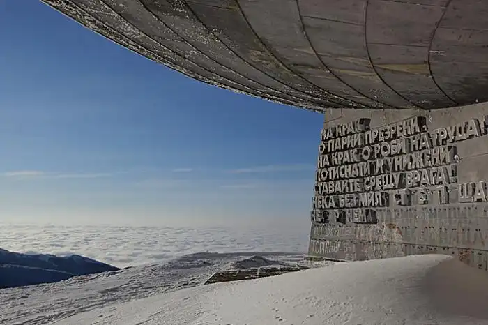 Когда-то в горах коммунистической Болгарии вымахали чудную железобетонную «летающую тарелку», внутренности которой красочно славили коммунистический строй. Это сооружение и в те живые времена единства народа и правящей партии смотрелось странновато. А уж сейчас…