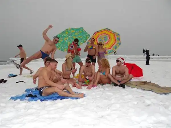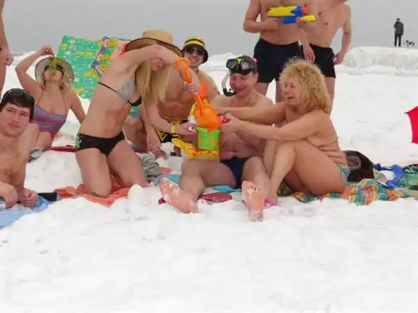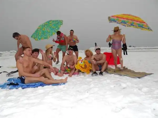 Они вышли на берег замерзшего Черного моря, чтобы позагорать под холодным солнцем :)
