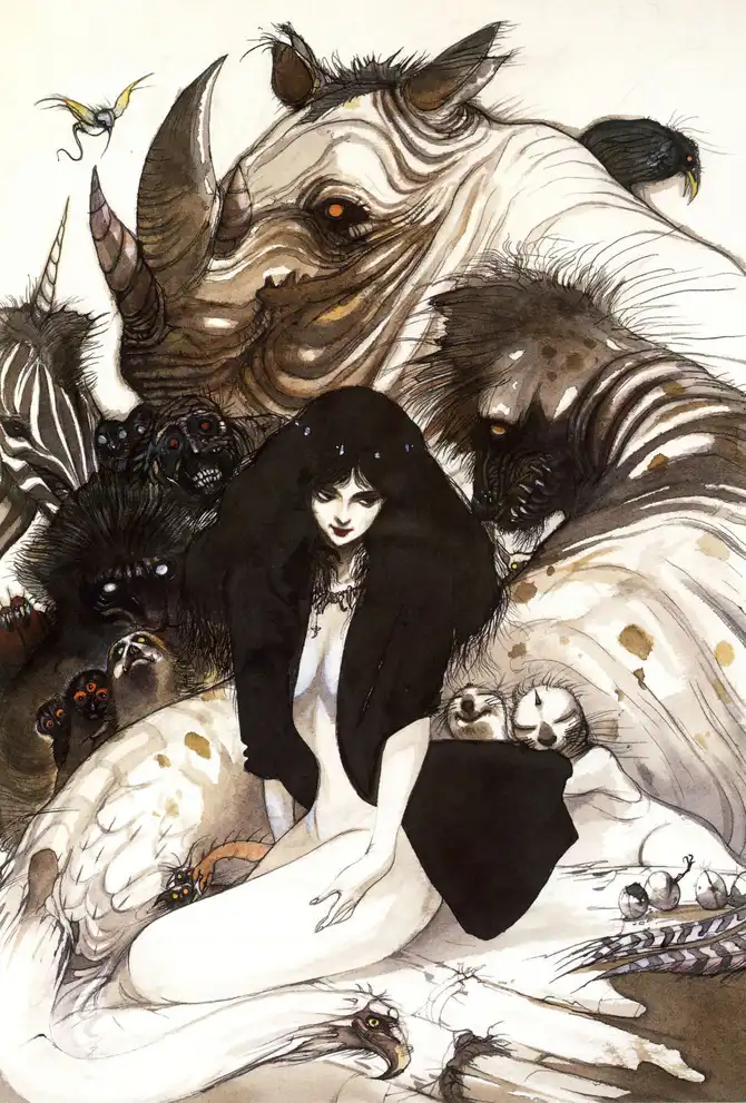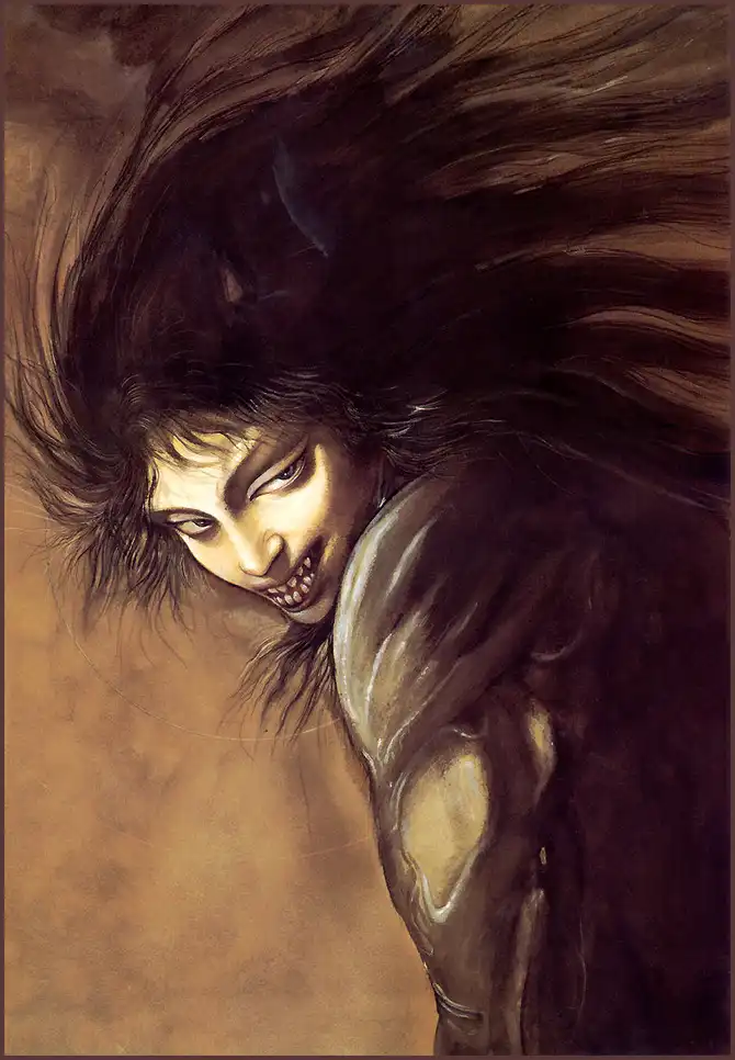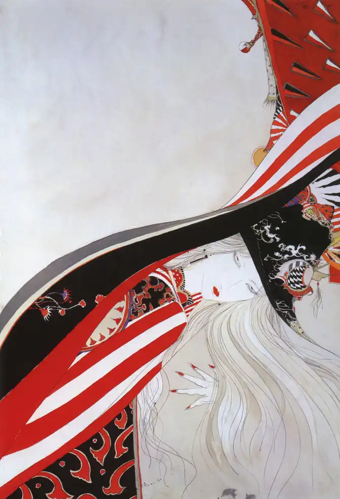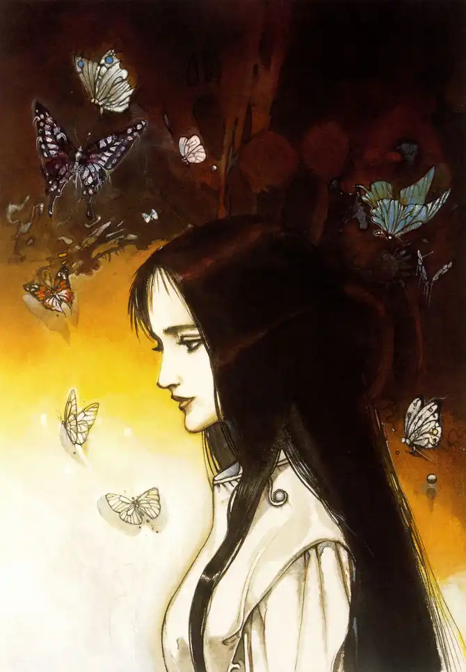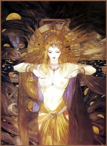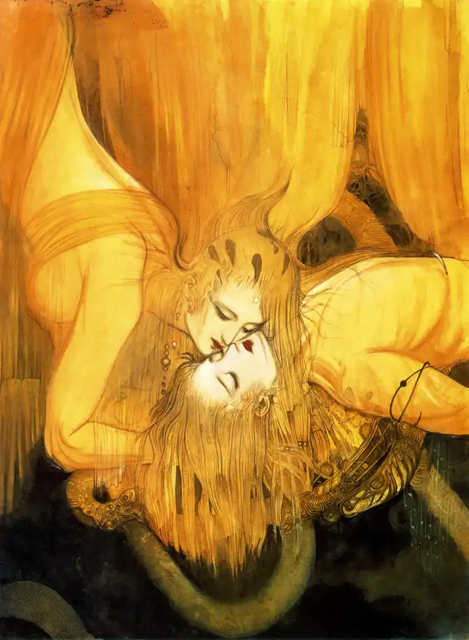 Определить стиль, в котором работает Амано, очень сложно. В разные периоды своего творчества он находился под влиянием американских комиксов, психоделической графики Питера Макса, в 70-е годы наибольший интерес художника вызывал стиль Art Nouveau. В результате родился необычный мир Еситаки Амано, где доминирует совершенная в своей плавности линия, будь то изгиб женского тела или острый пик башни. Неважно, что перед зрителем – черно-белый набросок или маскарадно-яркая иллюстрация к книге очередного автора, стиль Амано узнается по невероятному сочетанию национального традиционализма и тяги к экспериментам.