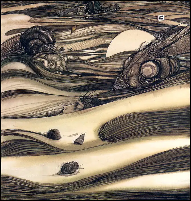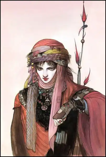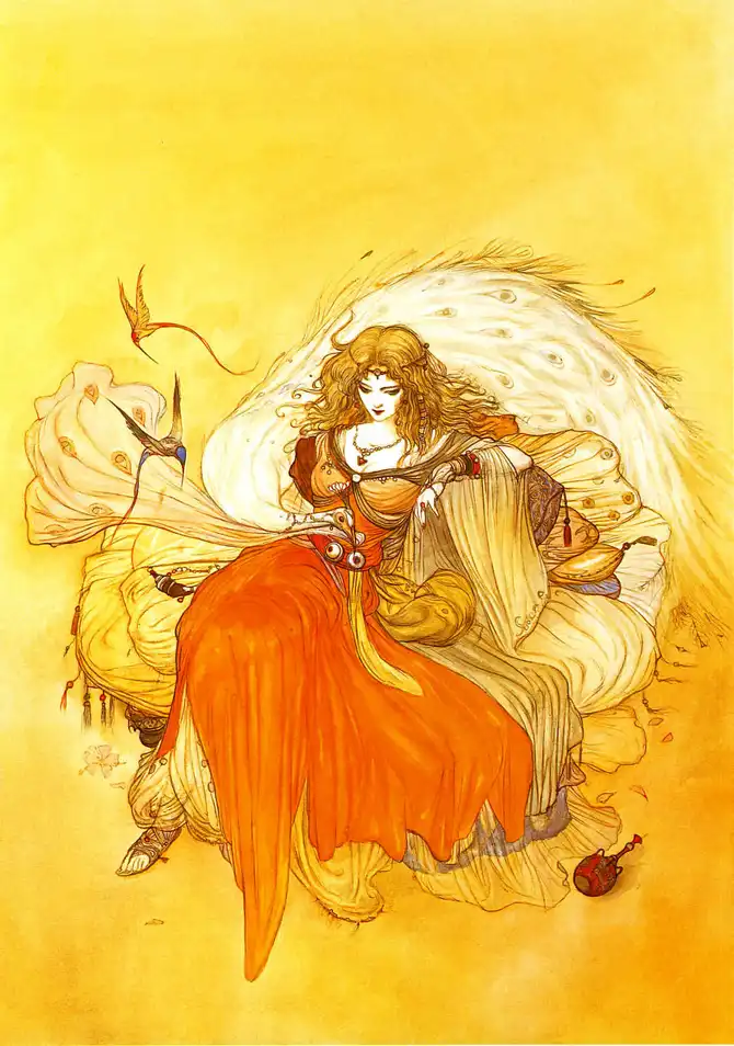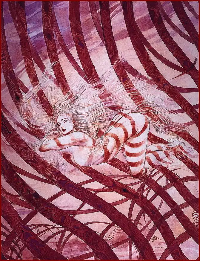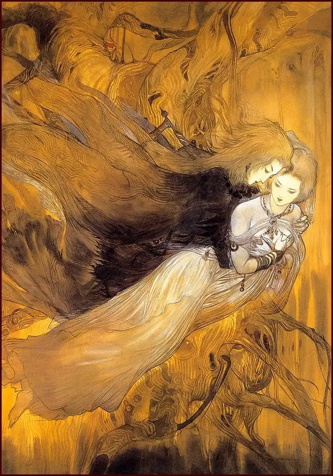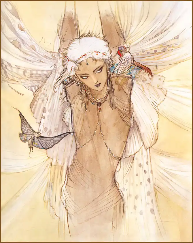 Определить стиль, в котором работает Амано, очень сложно. В разные периоды своего творчества он находился под влиянием американских комиксов, психоделической графики Питера Макса, в 70-е годы наибольший интерес художника вызывал стиль Art Nouveau. В результате родился необычный мир Еситаки Амано, где доминирует совершенная в своей плавности линия, будь то изгиб женского тела или острый пик башни. Неважно, что перед зрителем – черно-белый набросок или маскарадно-яркая иллюстрация к книге очередного автора, стиль Амано узнается по невероятному сочетанию национального традиционализма и тяги к экспериментам.