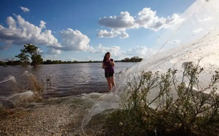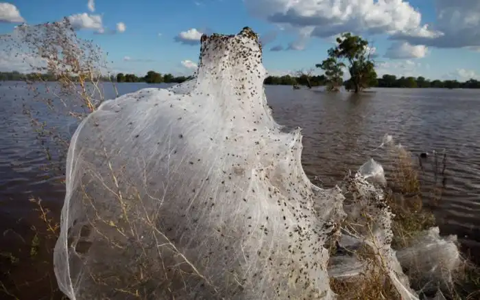 Наводнение в Австралии заставило пауков искать себе новый дом и покинуть уютные обжитые места.