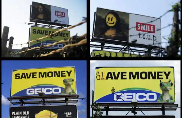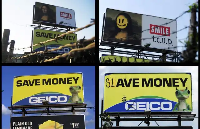 Мужики с головамим членов и яйцами...брррр....клевое хулиганство! Виден креатив хоть, а то у нас все х*й да х*й на заборе :)