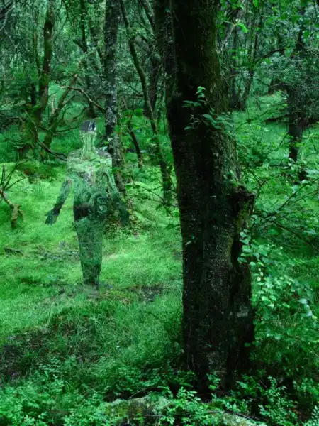 Но прогуливаясь по лесу у озера, неподалеку от шотландского городка Алоа неподготовленный человек может нешуточно испугаться… Ведь именно здесь, рядом с лесной тропинкой можно увидеть призрачные фигуры людей, сквозь которые видна зелень и ветки. Это – вовсе не призраки, как может показаться на первый взгляд, а работы шотландского скульптора Роба Малхолланда.