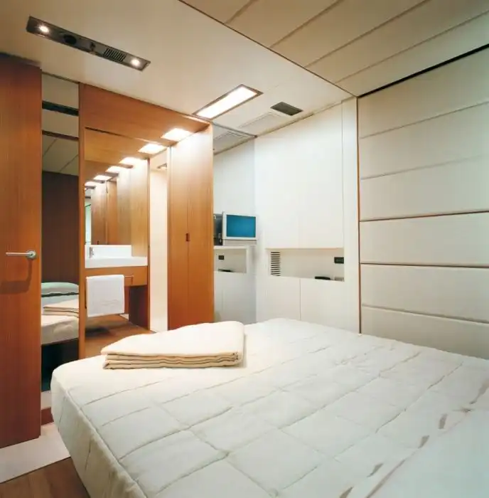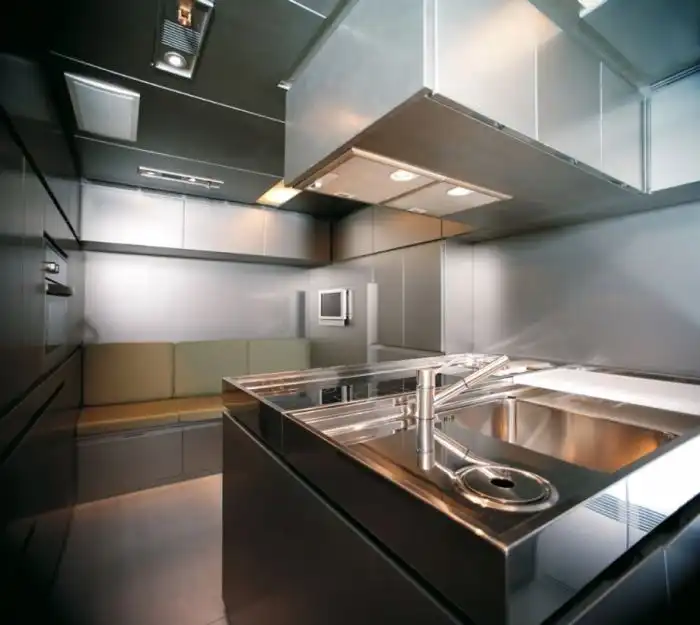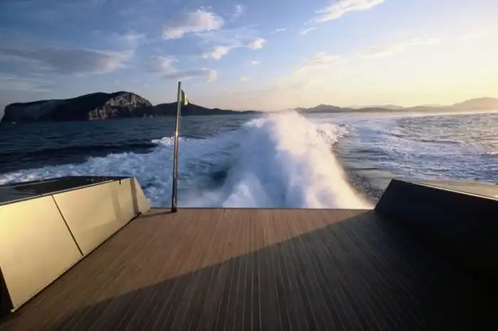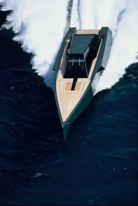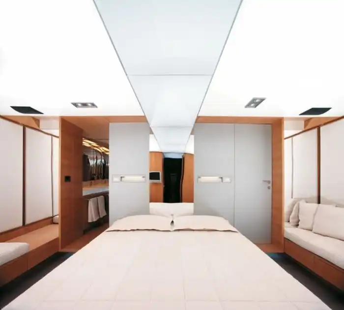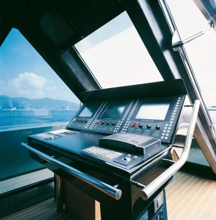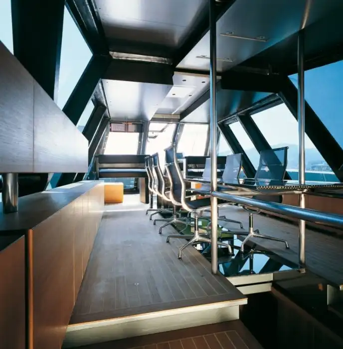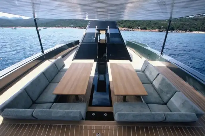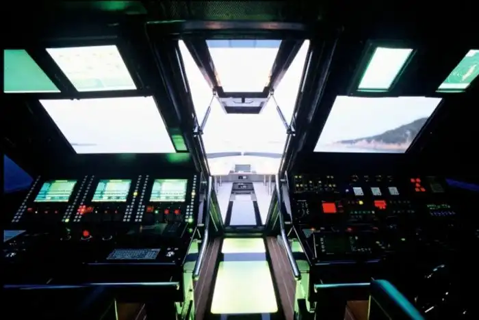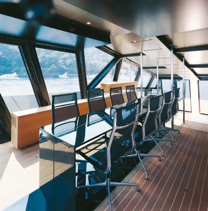 Дизайн яхты сразу привлекает к себе внимание своим футуристическим видом.
