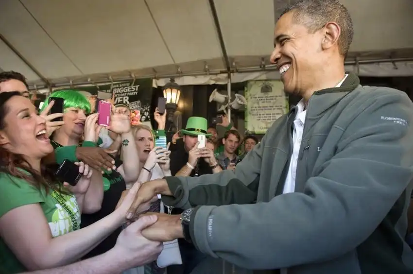 Барак Обама был в зеленой куртке (в день святого Патрика полагается одеваться во все зеленое) с надписью "VIP гость". Собравшаяся в баре толпа радостно приветствовала президента, а хозяин заведения вручил ему кружку пива.