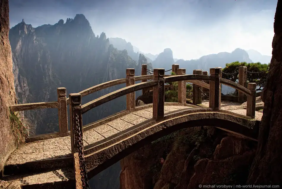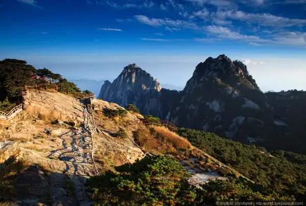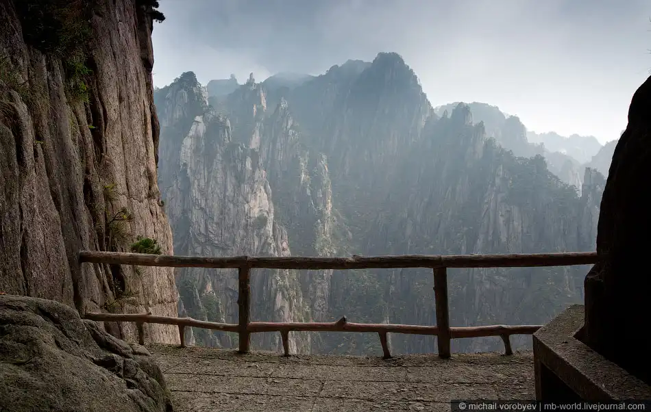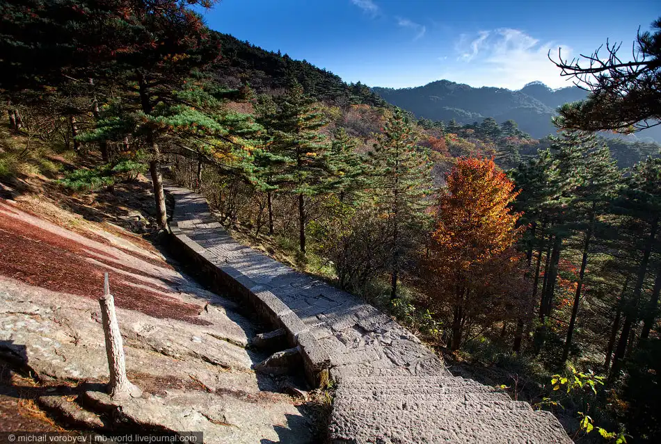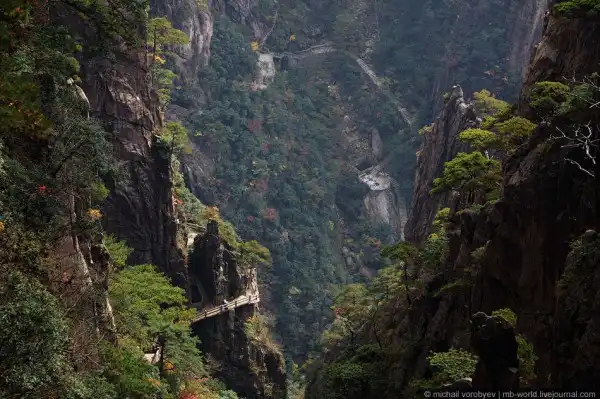 Узкие дорожки опоясывают склоны гор Хуаншань: