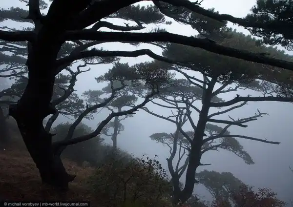 Удивительная способность сосен расти на твердом граните в горах Хуаншань связана с особым устройством их корневой системы. Корни этих сосен выделяют органическую кислоту и выдыхают углерод, который при соединении с водой превращается в углекислоту.