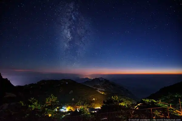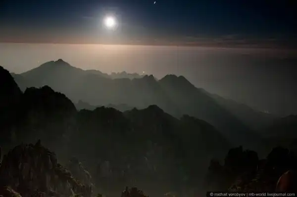 Внизу видны огни прилегающих к горам Хуаншань поселков: