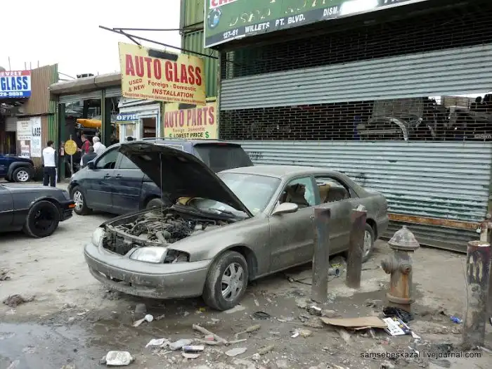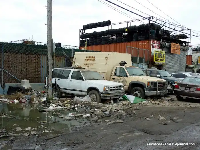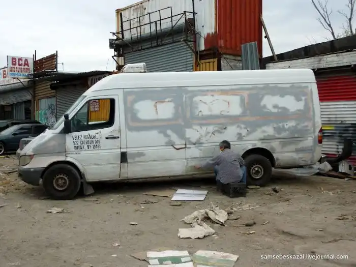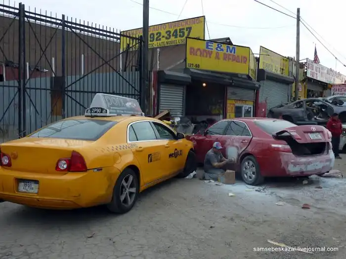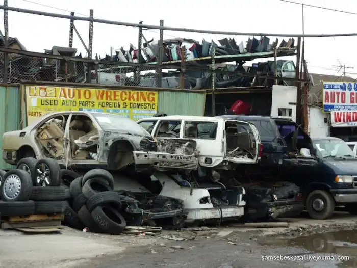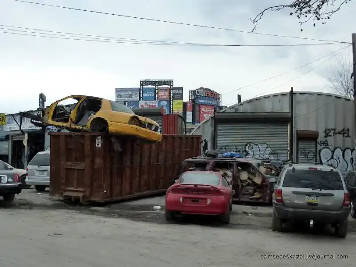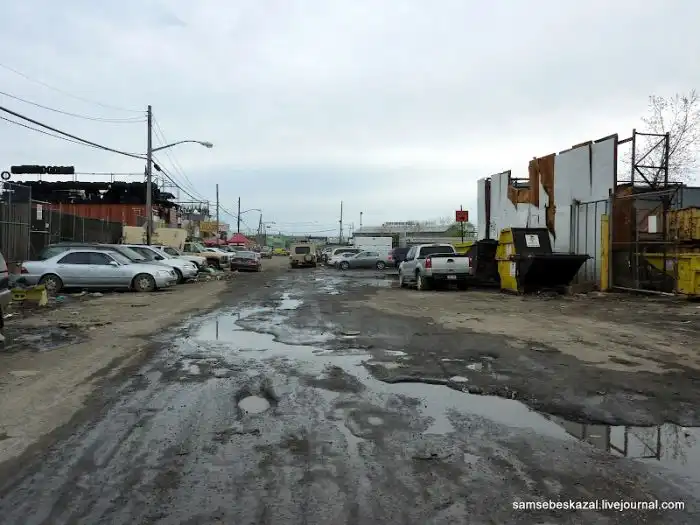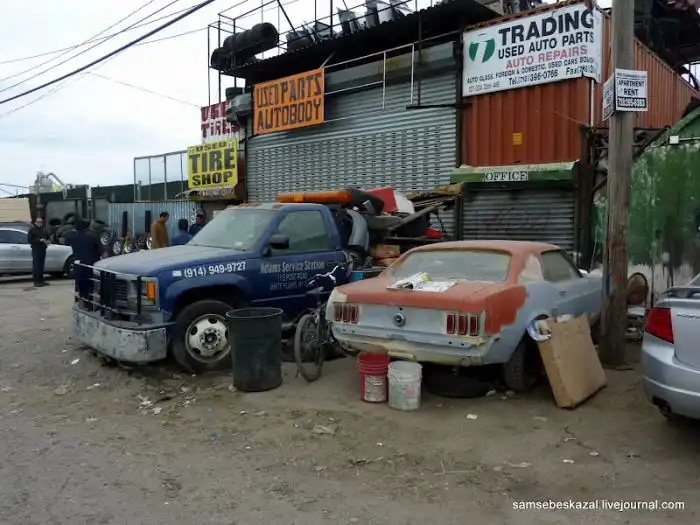В итоге эта дорога приводит к большой свалке автомобилей и массе механиков,
