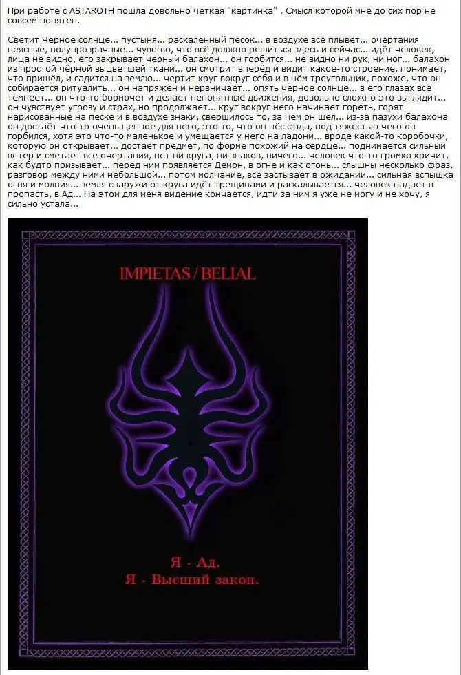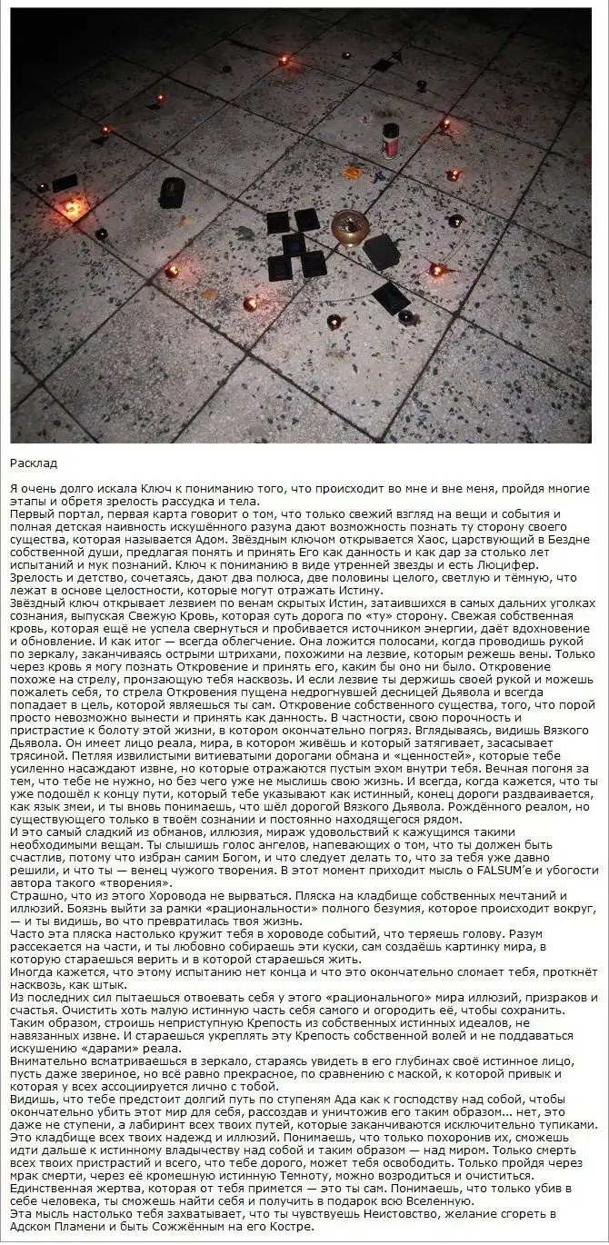 На одном очень мрачном форуме я нашел ритуал, описанный одной малолетней дурочкой.
